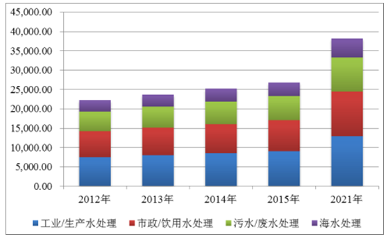 全球缓蚀剂在工业/生产水处理应用领域持续增长。2015 年,电力、油气、造纸、冶金、化工、其他行业市场需求分别为 4.35 亿美元、4.15 亿美元、3.50亿美元、 3.20 亿美元、 2.00 亿美元、2.45 亿美元,预计 2021 年分别达到 6.35 亿美元、5.90 亿美元、5.00 亿美元、4.60 亿美元、2.85 亿美元、3.45 亿美元。实验室纯水设备