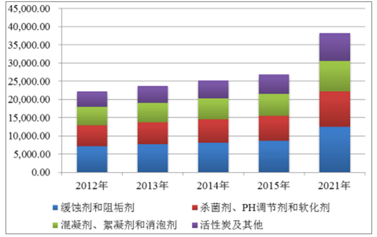 分别对缓蚀剂、混凝剂、絮凝剂、杀菌剂、消毒剂、阻垢剂、PH调节剂、软化剂等水处理剂的市场情况进行了计算和预测。